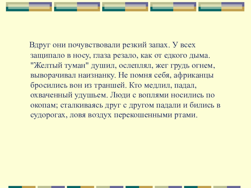 Слайд 6 Вдруг они почувствовали резкий запах. У всех защипало в