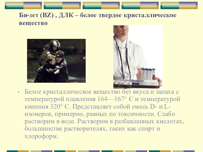 Слайд 17Би-зет (ВZ) , ДЛК – белое твердое кристаллическое вещество