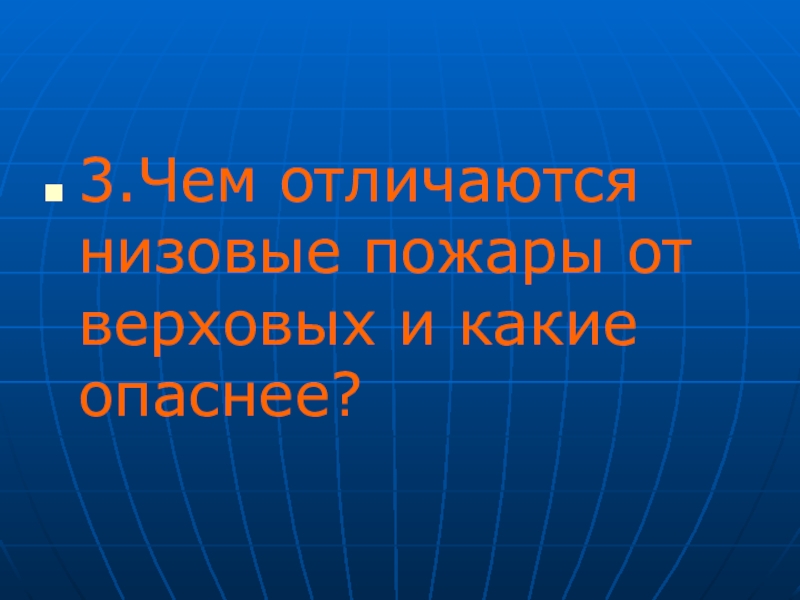 3.Чем отличаются низовые пожары от верховых и какие опаснее?