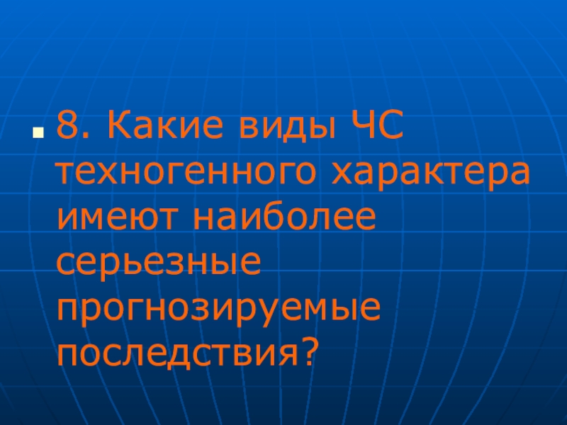 8. Какие виды ЧС техногенного характера имеют наиболее серьезные прогнозируемые последствия?