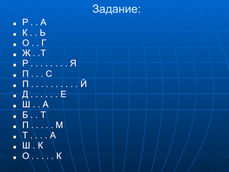 Задание:Р . . АК . . ЬО . . ГЖ . .ТР . . . . .