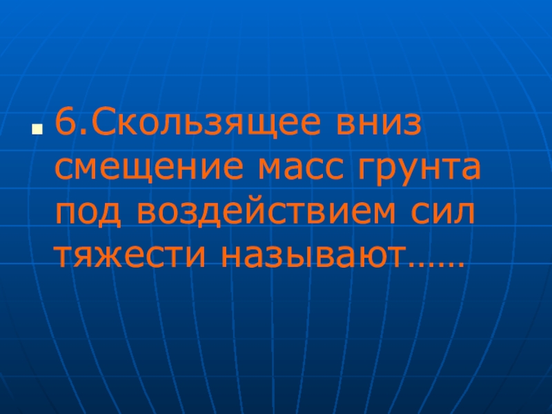 6.Скользящее вниз смещение масс грунта под воздействием сил тяжести называют……