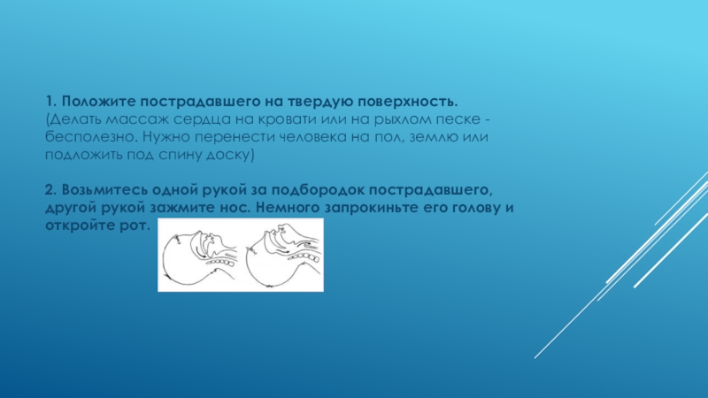 3. Сделайте вдох. Плотно обхватите губами рот пострадавшего и сделайте сильный но плавный выдох.