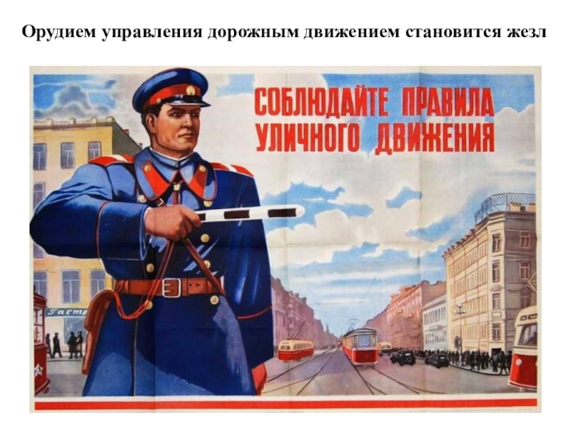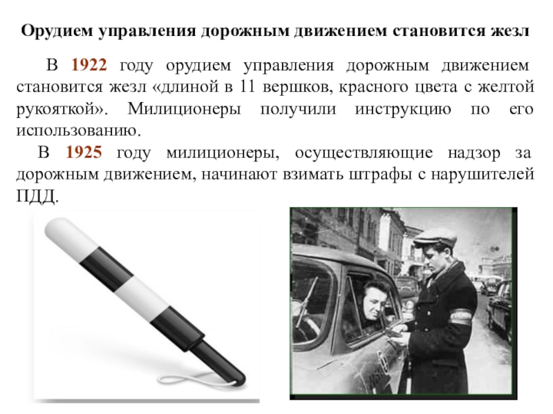 Слайд 9Орудием управления дорожным движением становится жезл