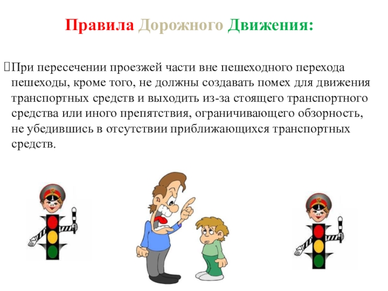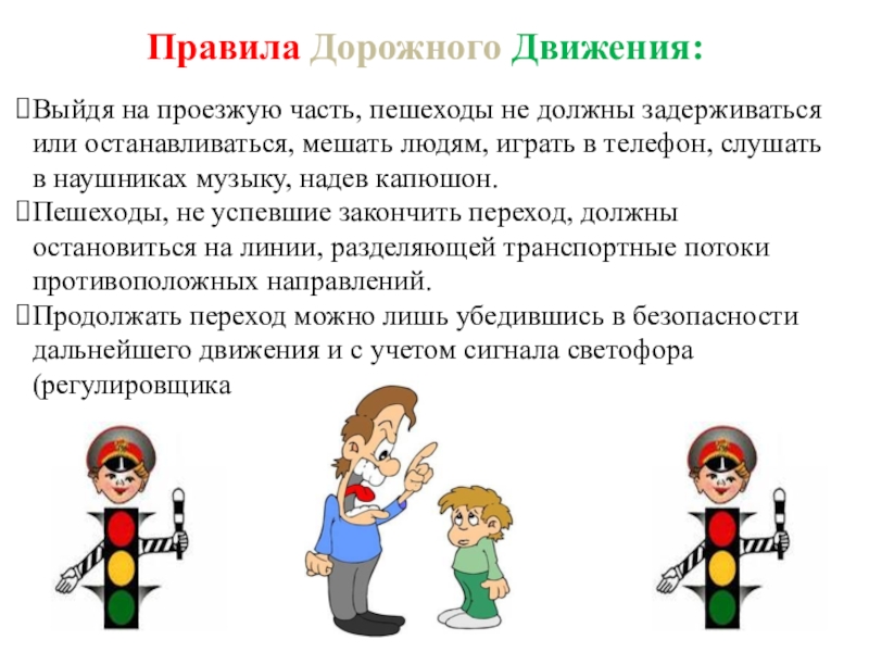 Слайд 37Выйдя на проезжую часть, пешеходы не должны задерживаться или останавливаться, мешать
