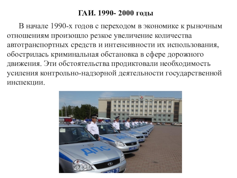 произошло резкое увеличение количества автотранспортных средств и интенсивности их использования, обострилась криминальная обстановка в сфере дорожного движения. Эти обстоятельства продиктовали необходимость усиления контрольно-надзорной деятельности государственной инспекции.