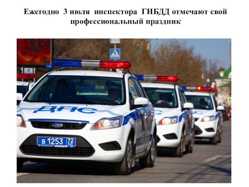 Слайд 18Ежегодно 3 июля инспектора ГИБДД отмечают свой профессиональный праздник