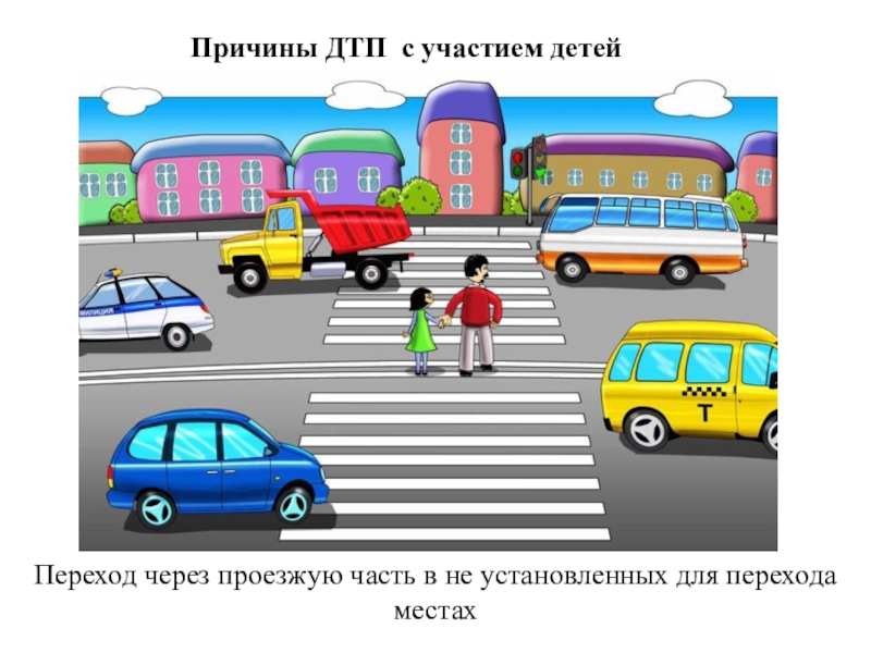 Слайд 46Причины ДТП с участием детей