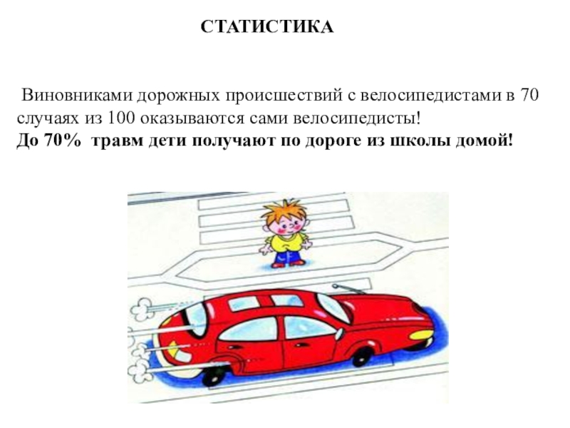 Слайд 27 Виновниками дорожных происшествий с велосипедистами в 70 случаях из 100