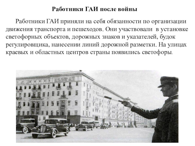 Слайд 13Работники ГАИ после войны