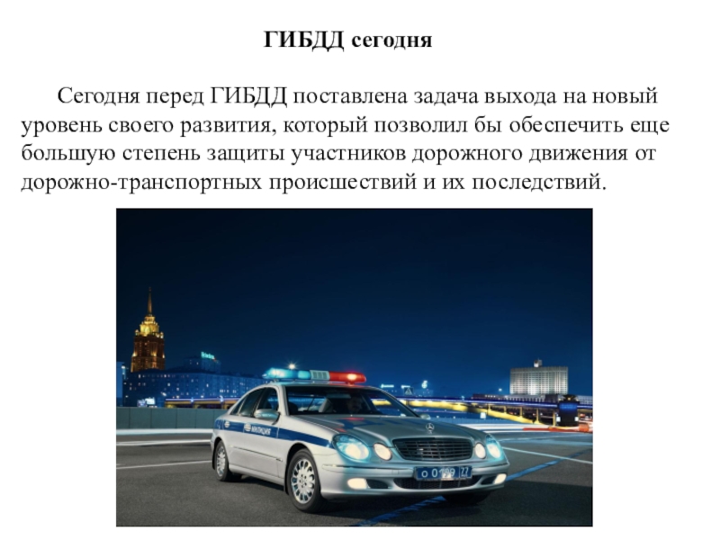 Слайд 17Сегодня перед ГИБДД поставлена задача выхода на новый уровень своего развития,