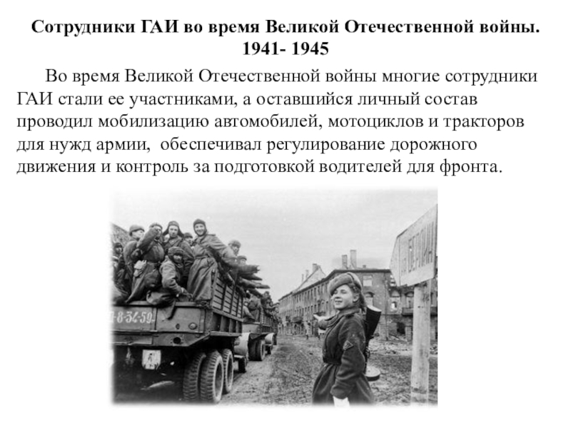 Слайд 11Сотрудники ГАИ во время Великой Отечественной войны.