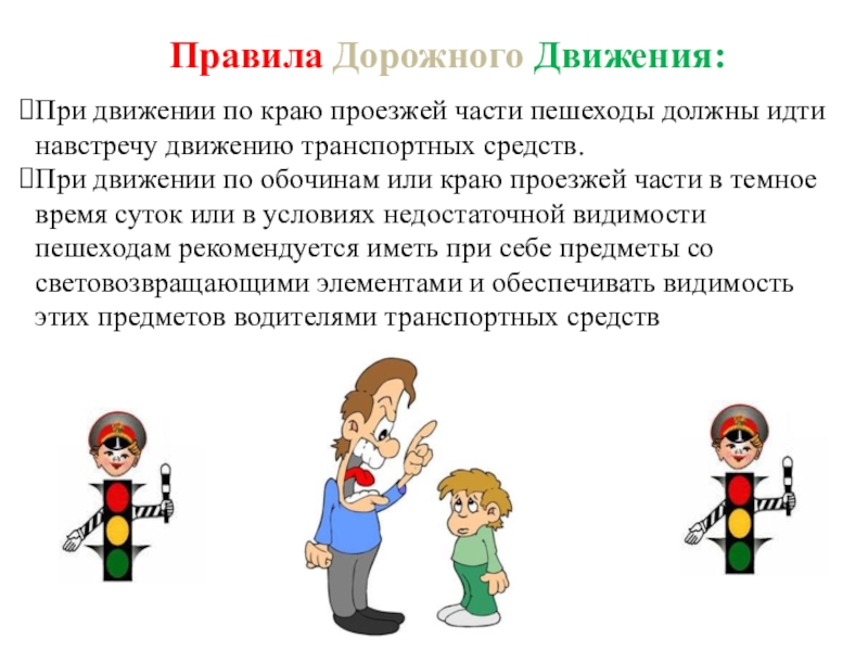 Слайд 32При движении по краю проезжей части пешеходы должны идти навстречу движению