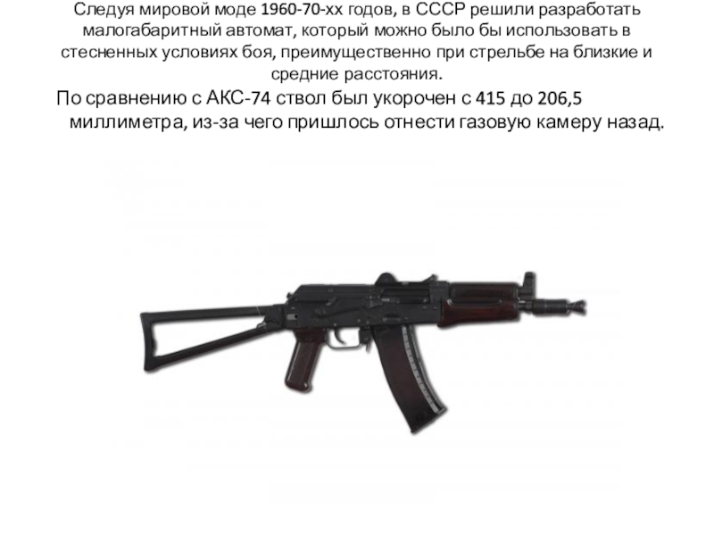 Слайд 53Следуя мировой моде 1960-70-хх годов, в СССР решили разработать малогабаритный автомат,