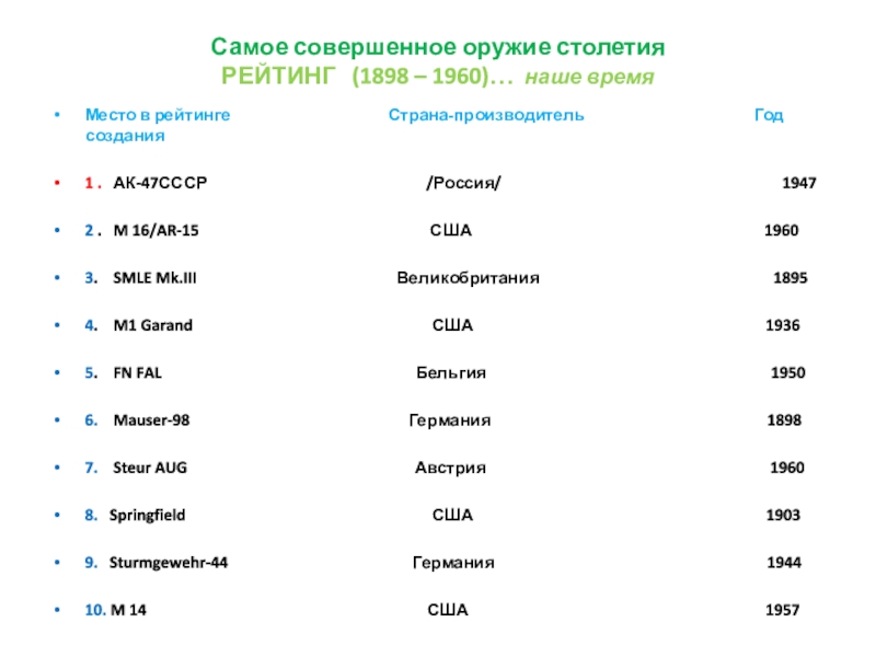 Слайд 6910 самых популярных модификаций автомата Калашникова