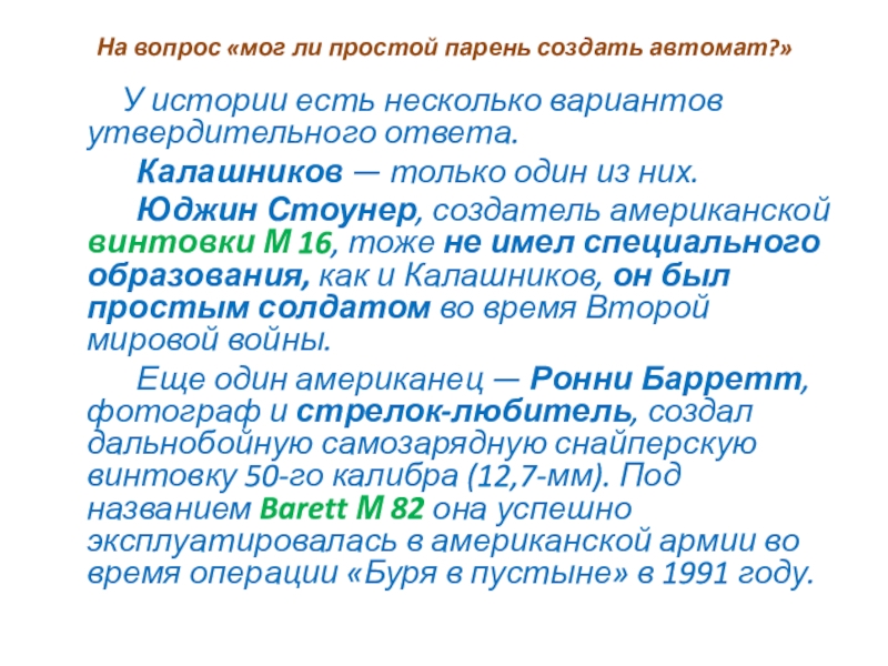 Слайд 40На вопрос «мог ли простой парень создать автомат?»