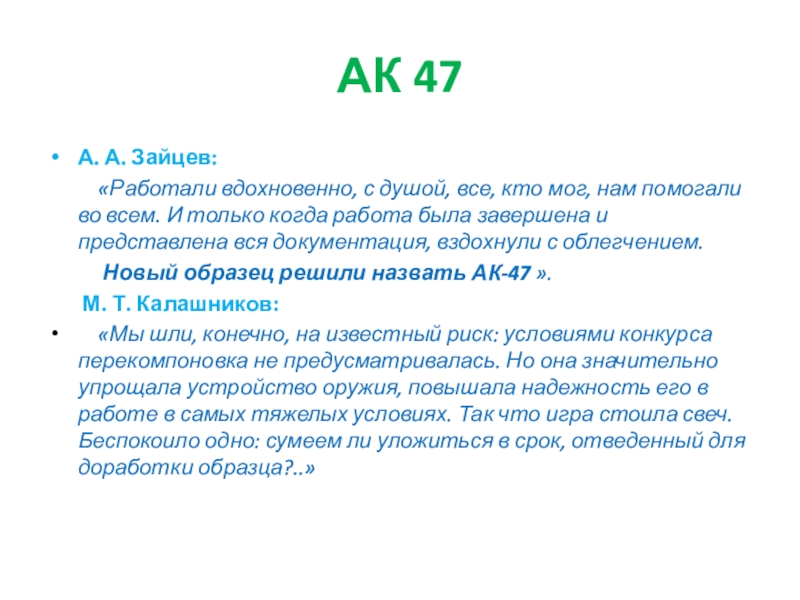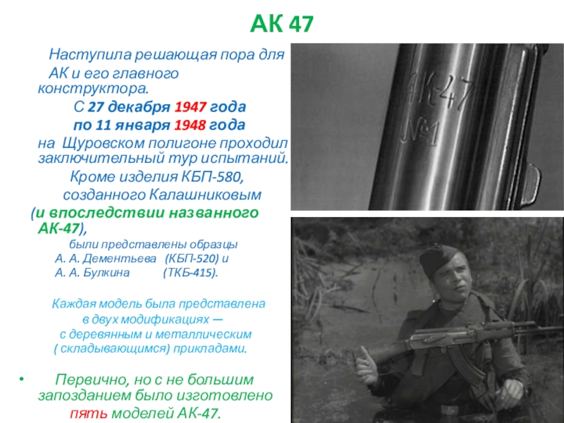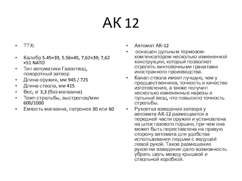 Слайд 55АК 102, АК 107, в их конструкции был сделан рывок в
