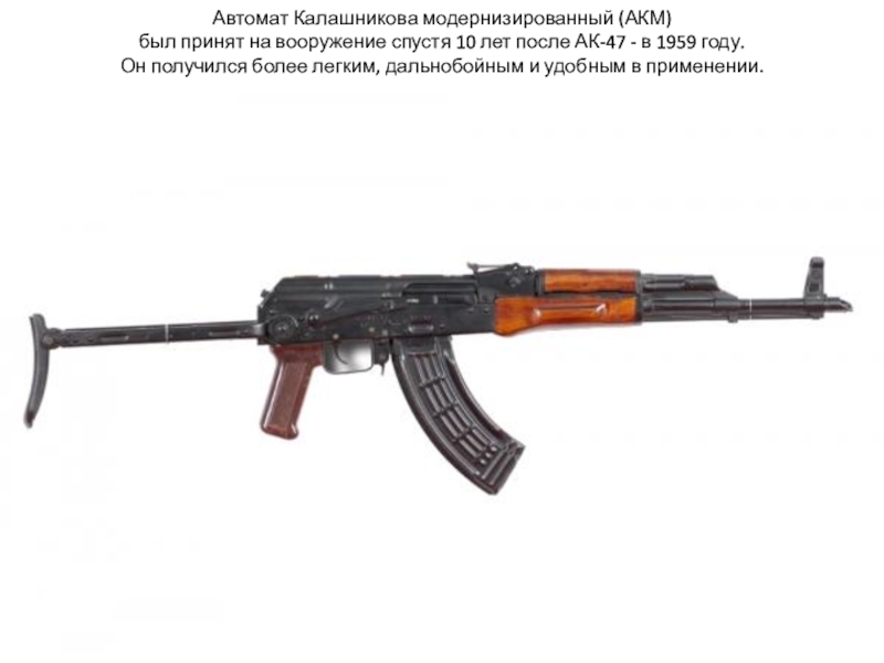 Слайд 47Автомат Калашникова модернизированный (АКМ)