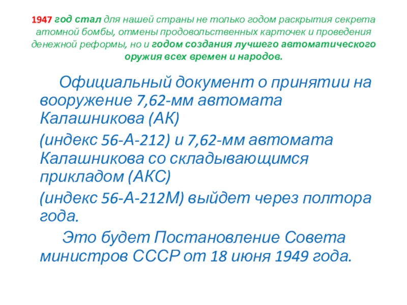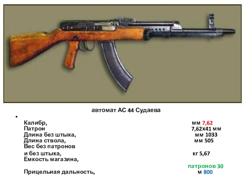 Слайд 87,62-мм автомат Кубынова. Опытный образец 1946 г.