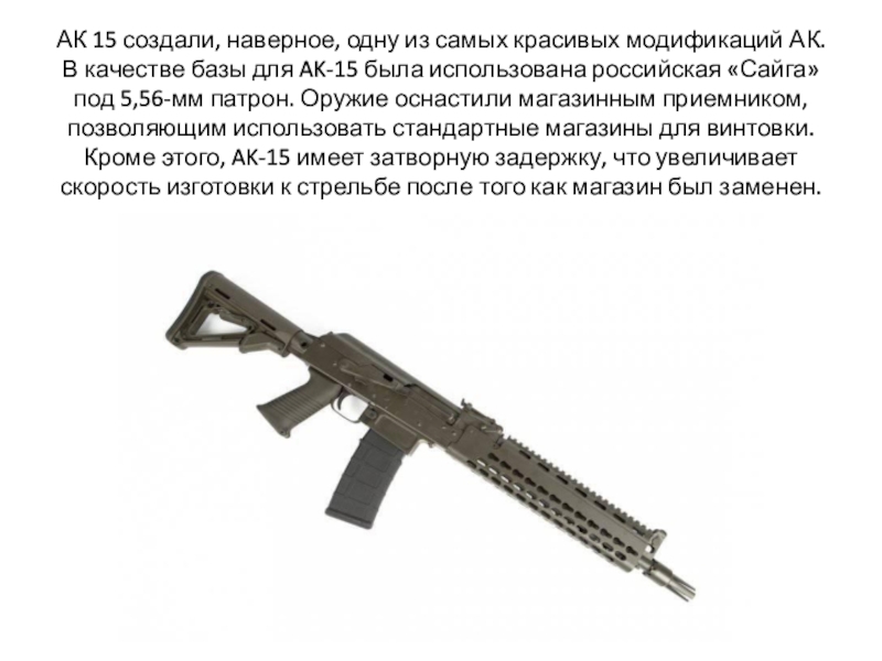 Слайд 66АК 15 создали, наверное, одну из самых красивых модификаций АК.