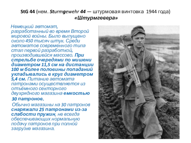 Слайд 20StG 44 (нем. Sturmgewehr 44 — штурмовая винтовка 1944 года)