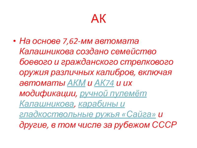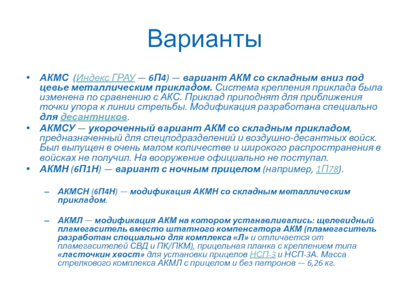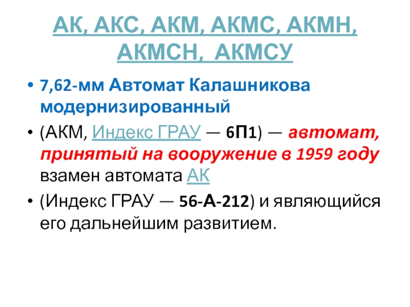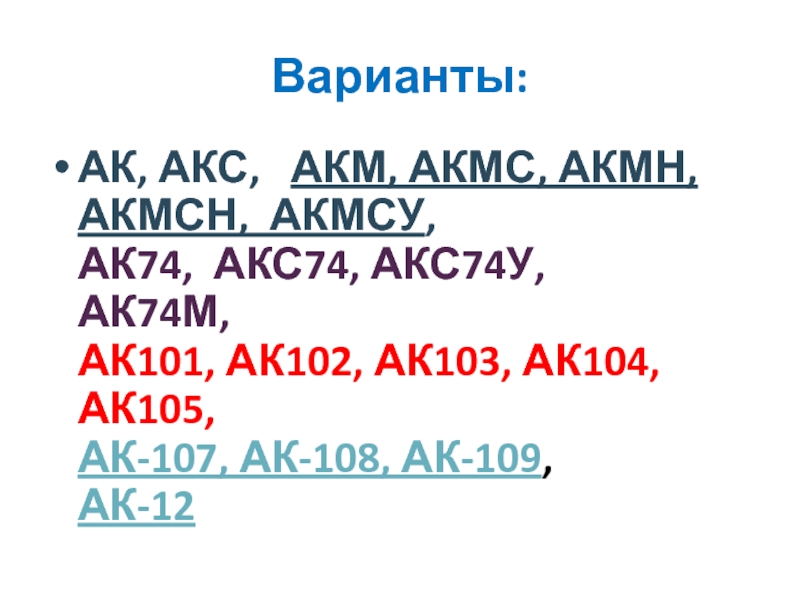 Слайд 37АК, АКС, АКМ, АКМС, АКМН, АКМСН, АКМСУ