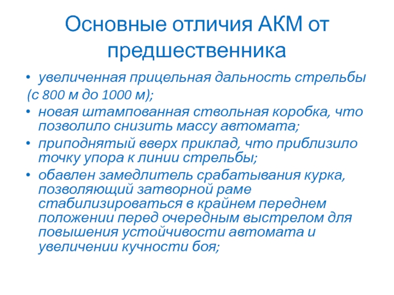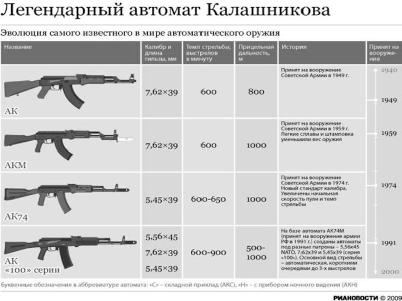 решения, характеристики стрельбы намного выше, чем у АКМ, которым сегодня вооружена наша армия. В другие страны мы поставляем уже только «сотую» серию.