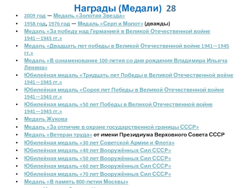 1958 год, 1976 год — Медаль «Серп и Молот»