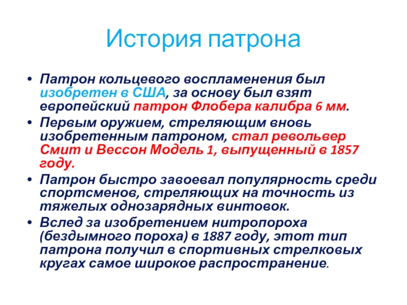 Патрон кольцевого воспламенения был изобретен в США, за основу был
