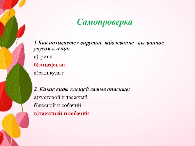 1.Как называется вирусное заболевание , вызванное укусом клеща: