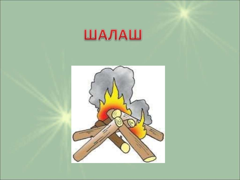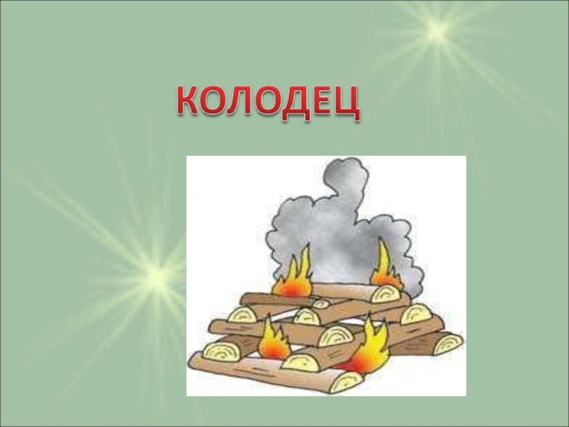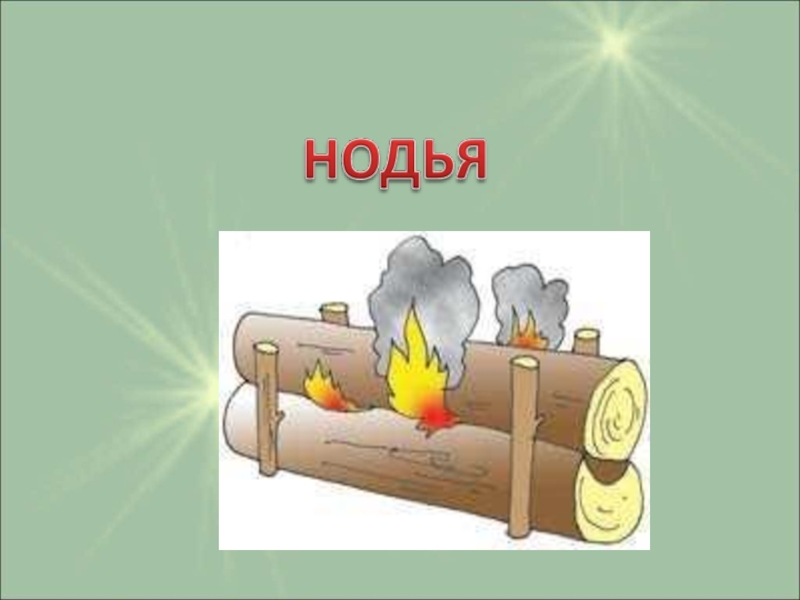 Слайд 34Поленья укладывают на угли по радиусам от одной точки.