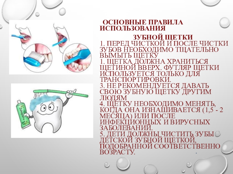 1. ПЕРЕД ЧИСТКОЙ И ПОСЛЕ ЧИСТКИ ЗУБОВ НЕОБХОДИМО ТЩАТЕЛЬНО ВЫМЫТЬ ЩЕТКУ
