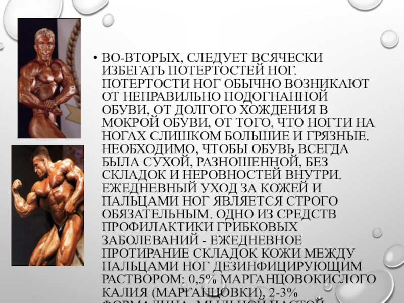 Слайд 16ВО-ВТОРЫХ, СЛЕДУЕТ ВСЯЧЕСКИ ИЗБЕГАТЬ ПОТЕРТОСТЕЙ НОГ. ПОТЕРТОСТИ НОГ ОБЫЧНО ВОЗНИКАЮТ ОТ