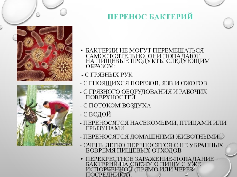 Слайд 13 ПЕРЕНОС БАКТЕРИЙ