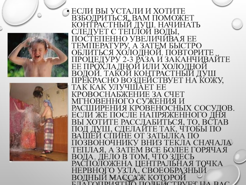 Слайд 9ЕСЛИ ВЫ УСТАЛИ И ХОТИТЕ ВЗБОДРИТЬСЯ, ВАМ ПОМОЖЕТ КОНТРАСТНЫЙ ДУШ. НАЧИНАТЬ