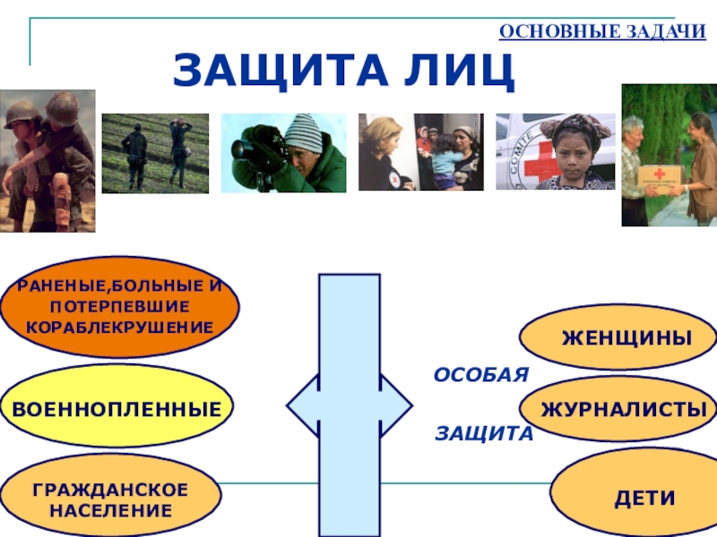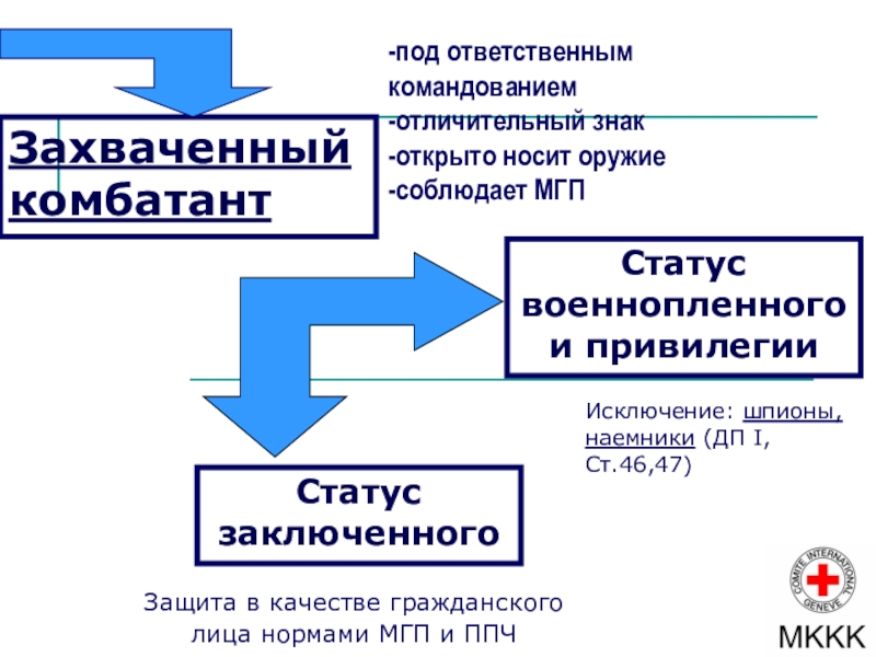 Не имеют права принимать участия в военных действиях, но имеют право на защиту