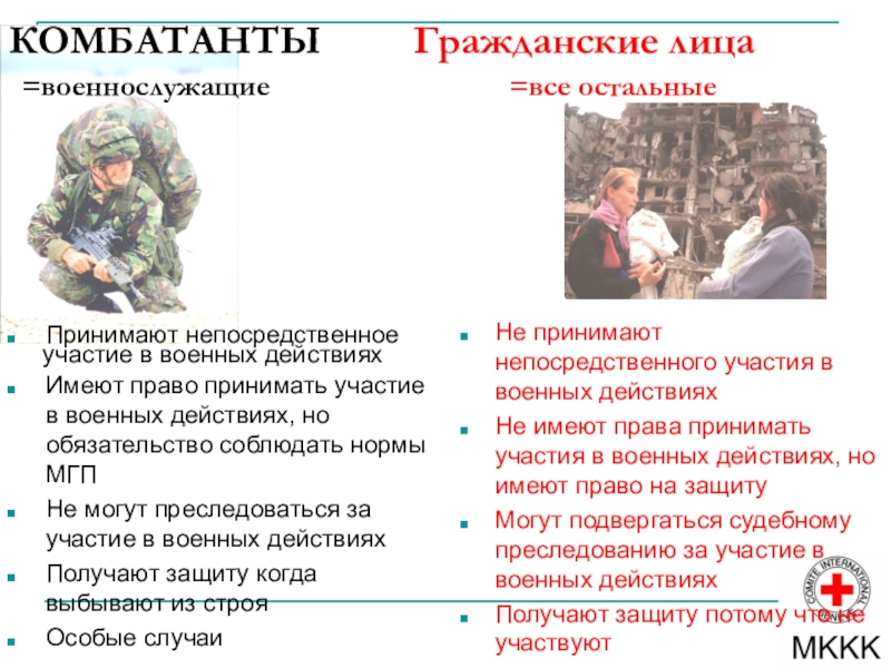 Имеют право принимать участие в военных действиях, но обязательство соблюдать нормы МГП