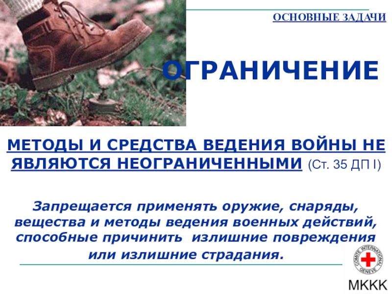 Запрещается применять оружие, снаряды, вещества и методы ведения военных действий, способные причинить излишние повреждения или излишние страдания.