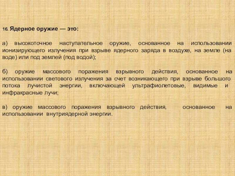 Слайд 1816. Ядерное оружие — это: