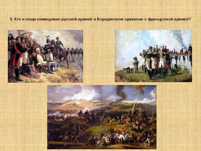 Слайд 295. Кто и когда командовал русской армией в Бородинском сражении с