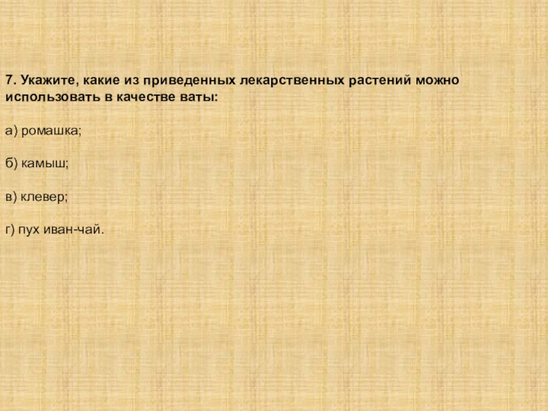 Слайд 97. Укажите, какие из приведенных лекарственных растений можно использовать в качестве