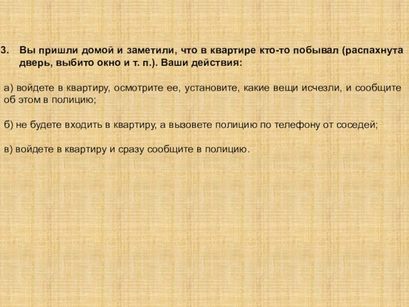 Слайд 5Вы пришли домой и заметили, что в квартире кто-то побывал (распахнута