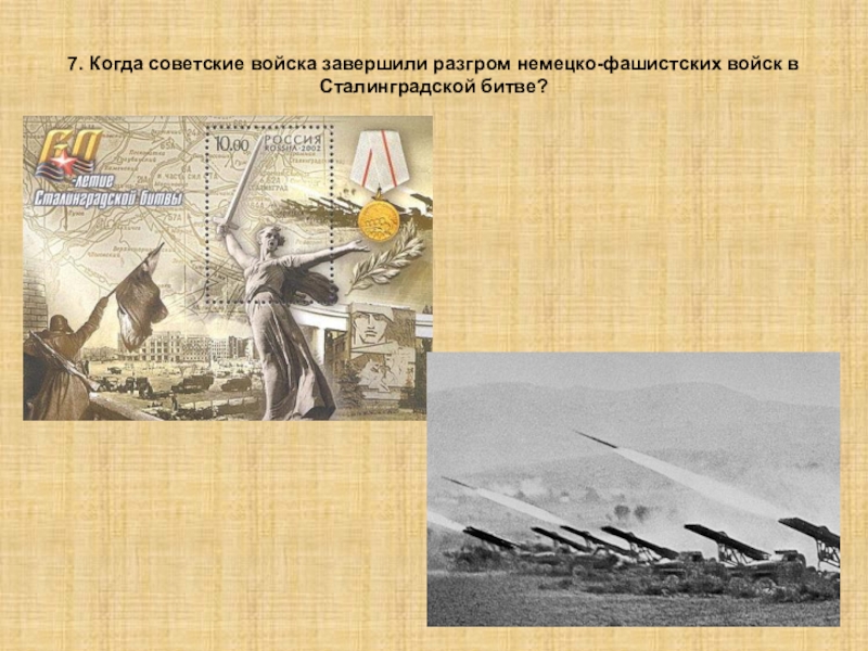 Слайд 317. Когда советские войска завершили разгром немецко-фашистских войск в Сталинградской битве?