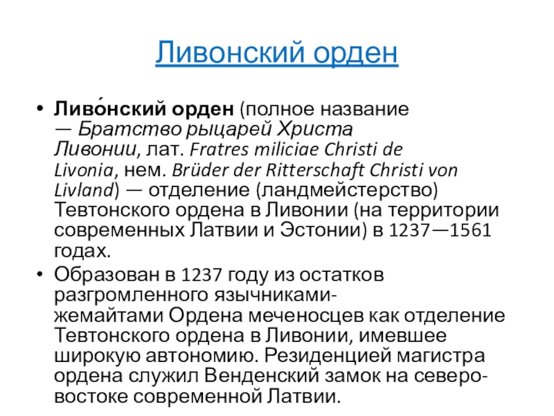Слайд 5Ливонский орден