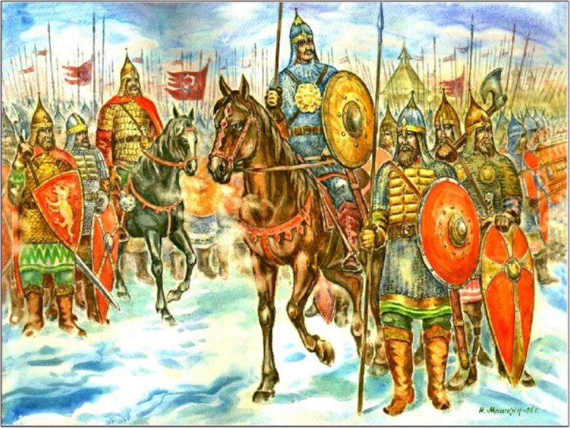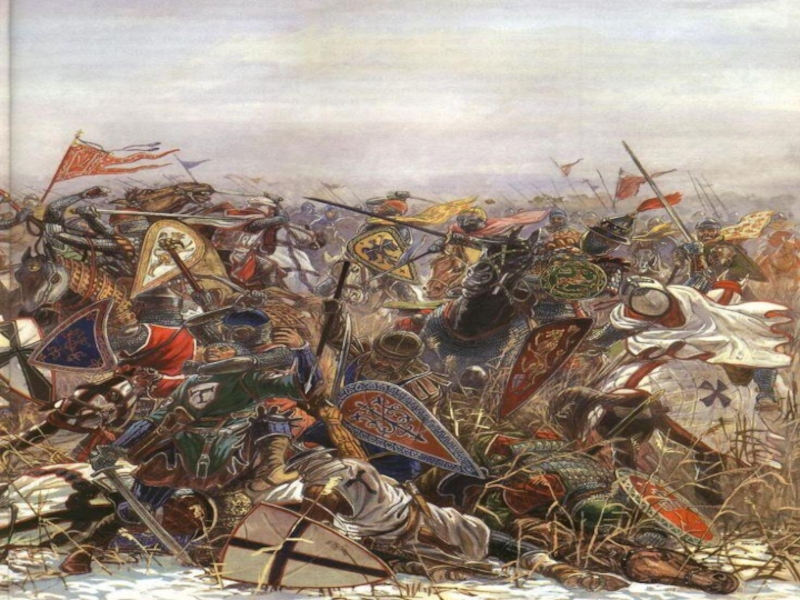 князя Александра Невского над немецкими рыцарями на Чудском озере (так называемое Ледовое побоище, 1242 г.).
