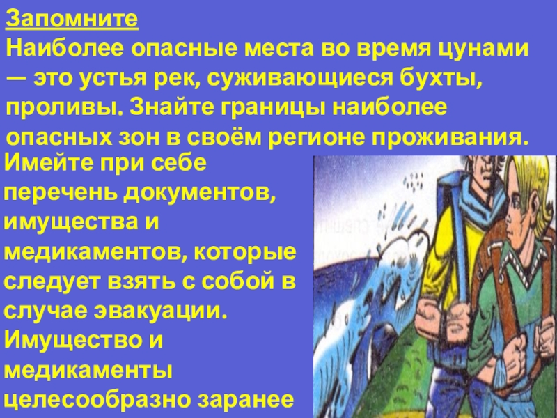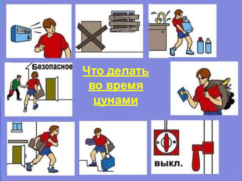 поведению при угрозе возникновения цунами, при цунами и после него.