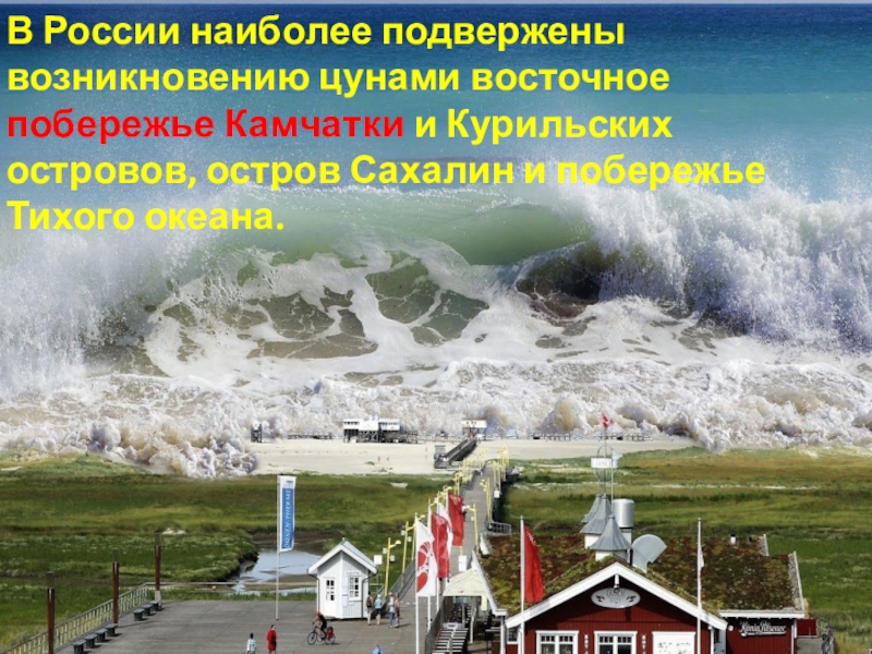 Слайд 14В России наиболее подвержены возникновению цунами восточное побережье Камчатки и Курильских
