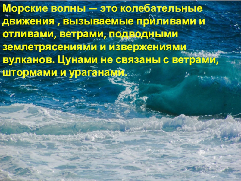 Слайд 3Морские волны — это колебательные движения , вызываемые приливами и отливами,