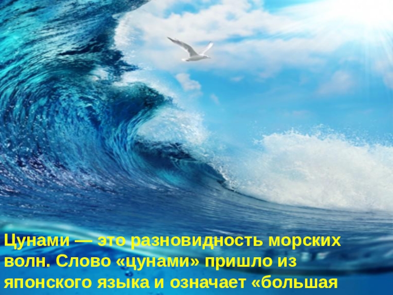 Слайд 2Цунами — это разновидность морских волн. Слово «цунами» пришло из японского