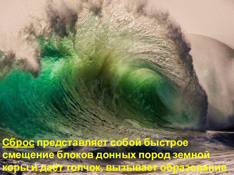 Слайд 8Сброс представляет собой быстрое смещение блоков донных пород земной коры и